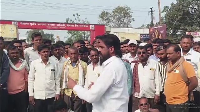 In Yeola, farmers have halted the auction of onions as the prices of onions and other agricultural produce are continuously falling, leading farmers to block the road. They are demanding a guaranteed price of two thousand rupees for onions, and the protestors have stated that they will not leave the road until the Tehsildar arrives at the scene.