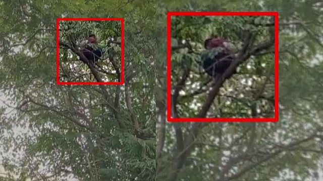 It is not known for what demands this person is protesting by climbing the tree. Efforts to bring the person down are currently underway.