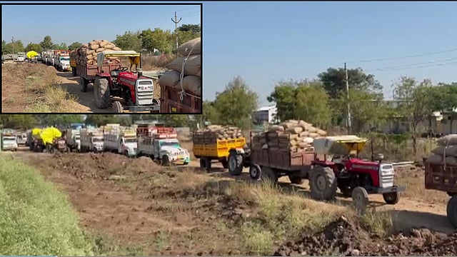 Queues of farmers' vehicles at the NAFED procurement center in Hingoli