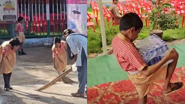(Buldhana) Schools in Vidarbha are starting from today. On this occasion, state education minister Dada Bhuse will welcome the students at the primary school in Singaon Jahangir in Buldhana district. However, even before Dada Bhuse arrives, teachers are seen putting the young students of the school to work like sweeping the school and picking up garbage.