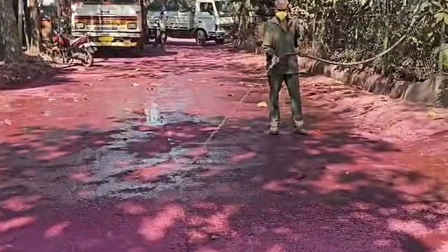 In Dombivli, which is always in discussion due to pollution from chemical companies, a pink road was seen. There are many chemical companies in Dombivli MIDC, and because of this, the residents of Dombivli always have to endure pollution. A few years ago, there was green rain and orange oil-mixed rain in Dombivli. Now, due to chemicals, the entire MIDC road has turned pink.